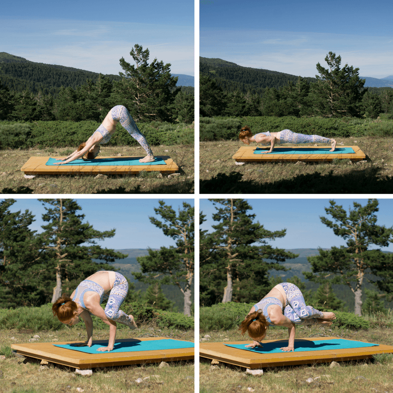 Os invito a poner en práctica las cuatro posturas de fuerza y equilibrio del collage. La secuencia responde al sentido de los kramas, es decir, un asana organiza y dispone la siguiente. Practicad despacio y con paciencia, tratando de mantener cinco respiraciones en cada posición, si son menos no pasa nada. Se trata de descubrir la fuerza que hay en vosotros paso a paso.