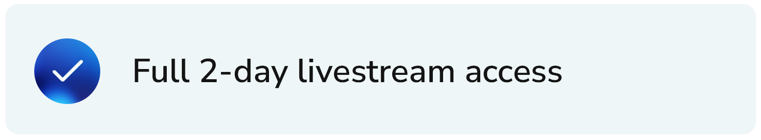 After purchasing your 2-day livestream ticket, you'll receive an instant confirmation email with your unique access link. Simply click the link on the day of the event to join the livestream. We'll also send reminder emails before the event begins.